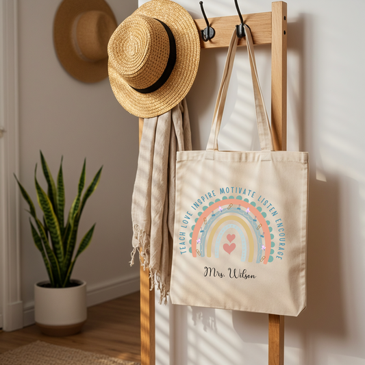 Teacher Tote Bag Custom Canvas Large School Carryall, Personalized Laptop Shoulder Bag, Perfect Teaching Gift of Appreciation