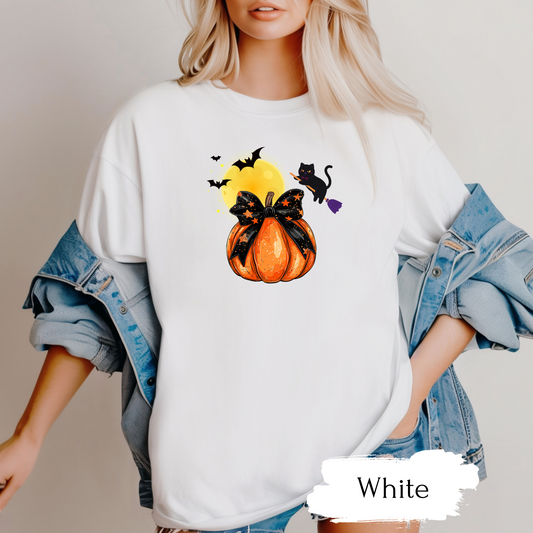 Black Cat & Pumpkin Halloween Shirt – Cute Halloween Cat T-Shirt for Women