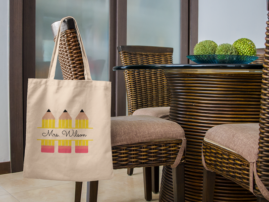 Custom Canvas Tote Bag for Teachers, Personalized Teaching Bag Gift, Large Appreciation Carryall for School, Cute Laptop Shoulder Tote