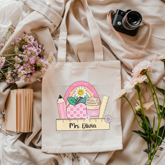 Custom Teacher Tote Bag , Back to School Educator Tote Bag, Personalized Laptop Shoulder Bag, Perfect Teaching Gift of Appreciation