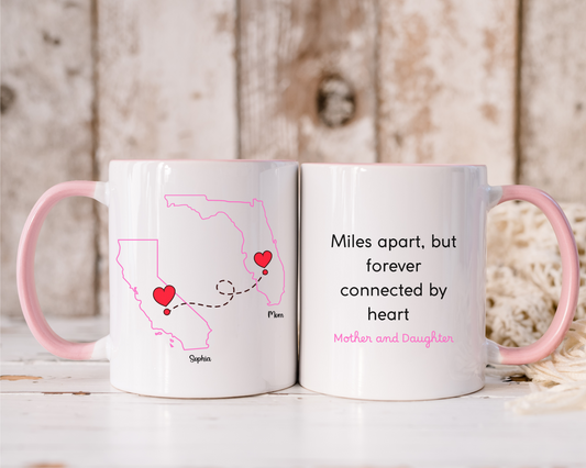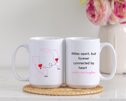 Long Distance Love Mug for Mom or Daughter Custom State to State Mug with Names Mother Daughter Gift Long Distance Friends or BFF Mug