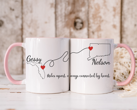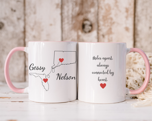 Going Away Gift Girlfriend/Boyfriend, Long Distance Love Mug, State to State Custom Coffee Cup with Names, Personalized Long Distance Gift
