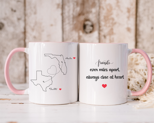 Custom State to State Mug with Names Long Distance Custom Mug for Friends or Family Best Friend Distance Gift or Going Away Present for Her