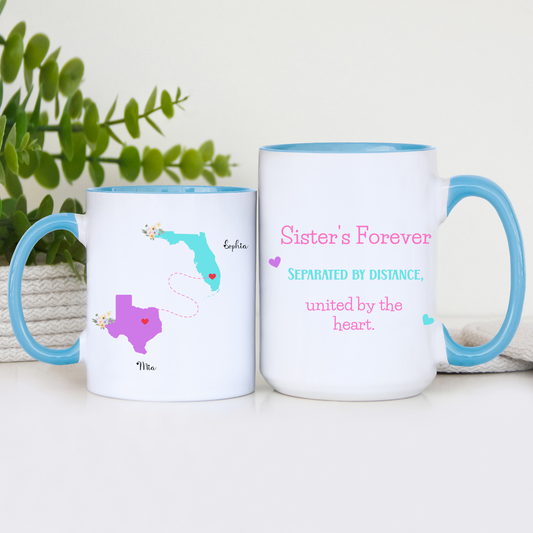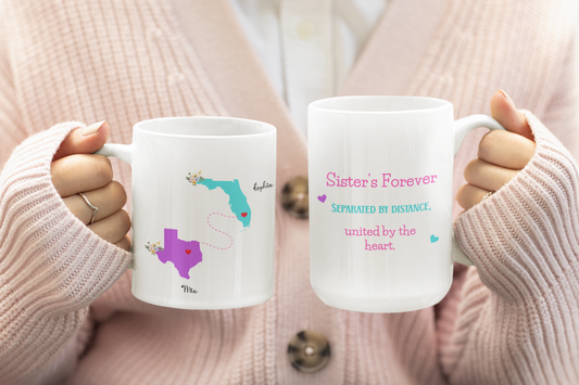 Custom Sister State to State Mug Long Distance Sister Gift with Names Personalized Coffee Cup for BFF Going Away or Birthday Present for Her