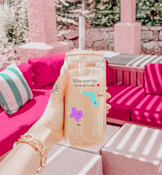 Long Distance Sipper Glass with States and Names Custom State to State Friendship Gift Personalized Glass for Best Friend Going Away Gift