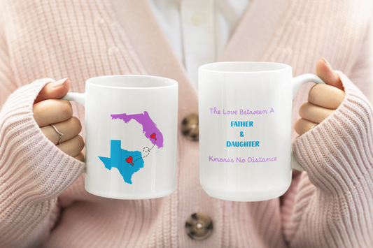 Mug for Daughter and Father Long Distance Personalized State to State Coffee Cup Custom Names Long Distance Love Gift or Going Away Gift Her