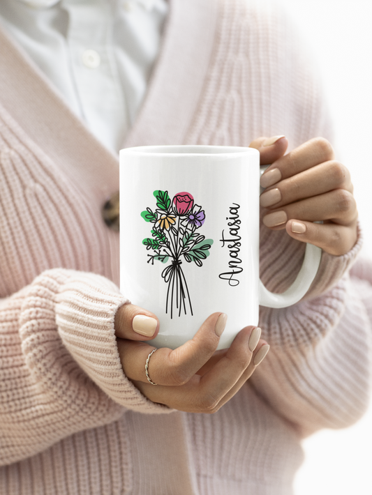 Custom Floral Coffee Mug with Name Personalized Birth Flower Design Coquette Style Gift for Mom Friend Daughter Wife or Coworker Birthday