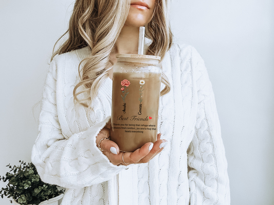 BFF Sipper Glass Personalized State to State Best Friend Gift Funny Birthday Glass for Women Custom Besties Forever Drinkware BFF Glass Cup
