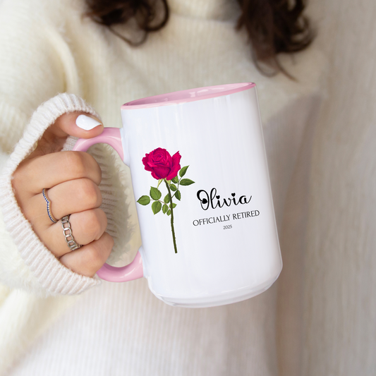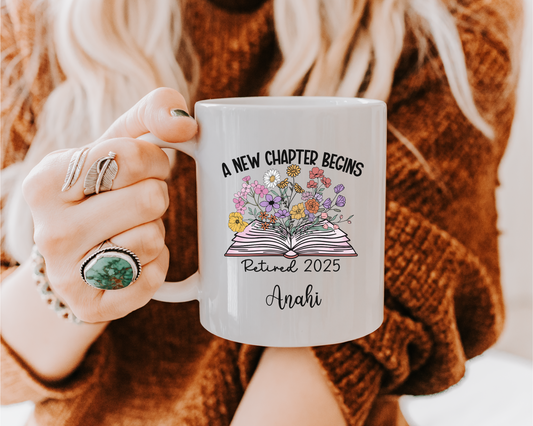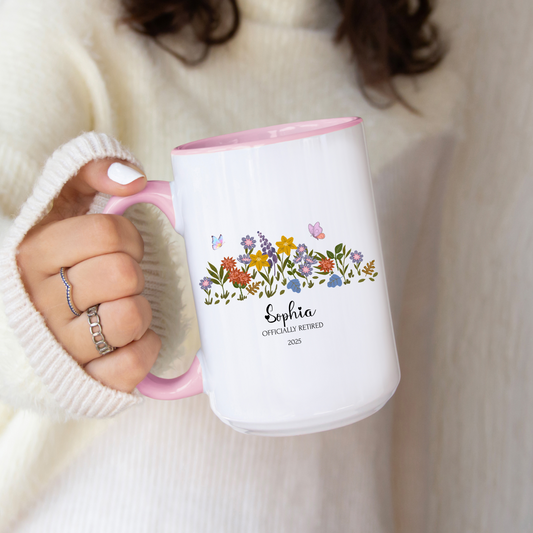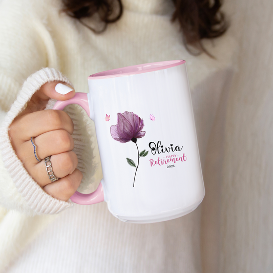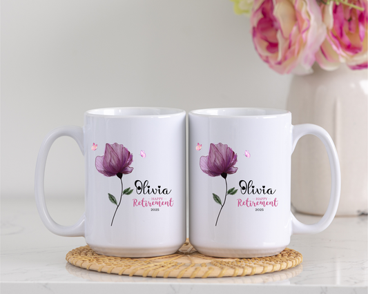 Retirement mug personalized with flowers, custom name & message, perfect floral retirement gift for coworkers, Boss, Friends, Mom and Dad