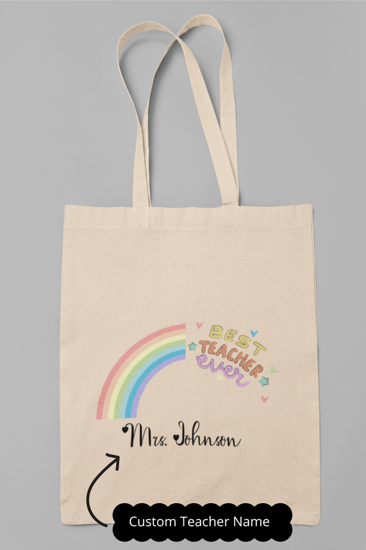 Personalized Canvas Teacher Tote Bag - Back to School Teacher Bag Gift, Teacher Appreciation Tote with Pockets, Custom Teacher Laptop Bag