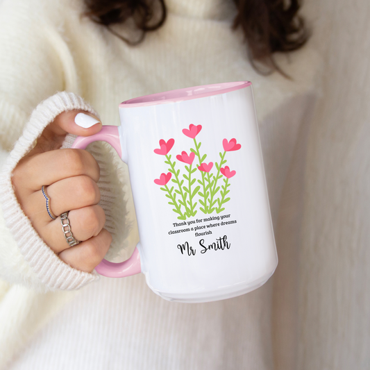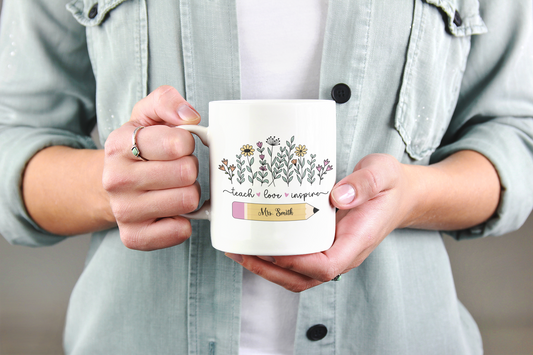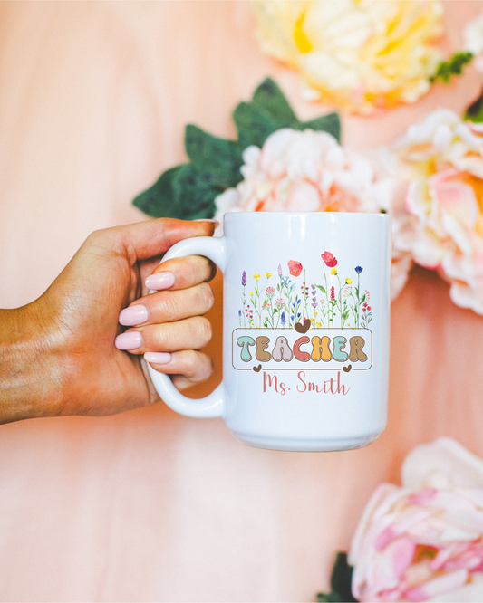 Personalized Teacher Gift Custom Floral Teacher Coffee Mug with Name for Birthday Appreciation Christmas or Back to School Wildflower Design