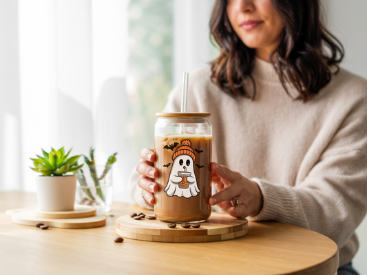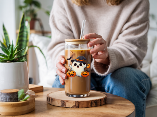 Halloween Ghost Sipper Glass - 16oz Cute Design, Trick-or-Treat Drinkware, Spooky Party Decor, Fall Festive Vibe, Gift for Kids