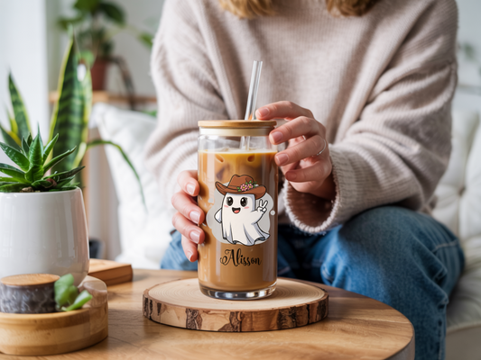 Personalized Sipper Glass, Fun Water Bottle for Moms, Halloween Drinkware