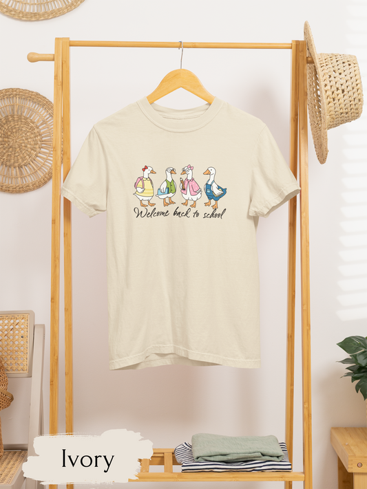 Back to School Ducks T-Shirt, Unisex Garment-Dyed Tee, Fun School Shirt, Cute T-Shirt for Kids, Teacher Appreciation Gift, Classroom Gear