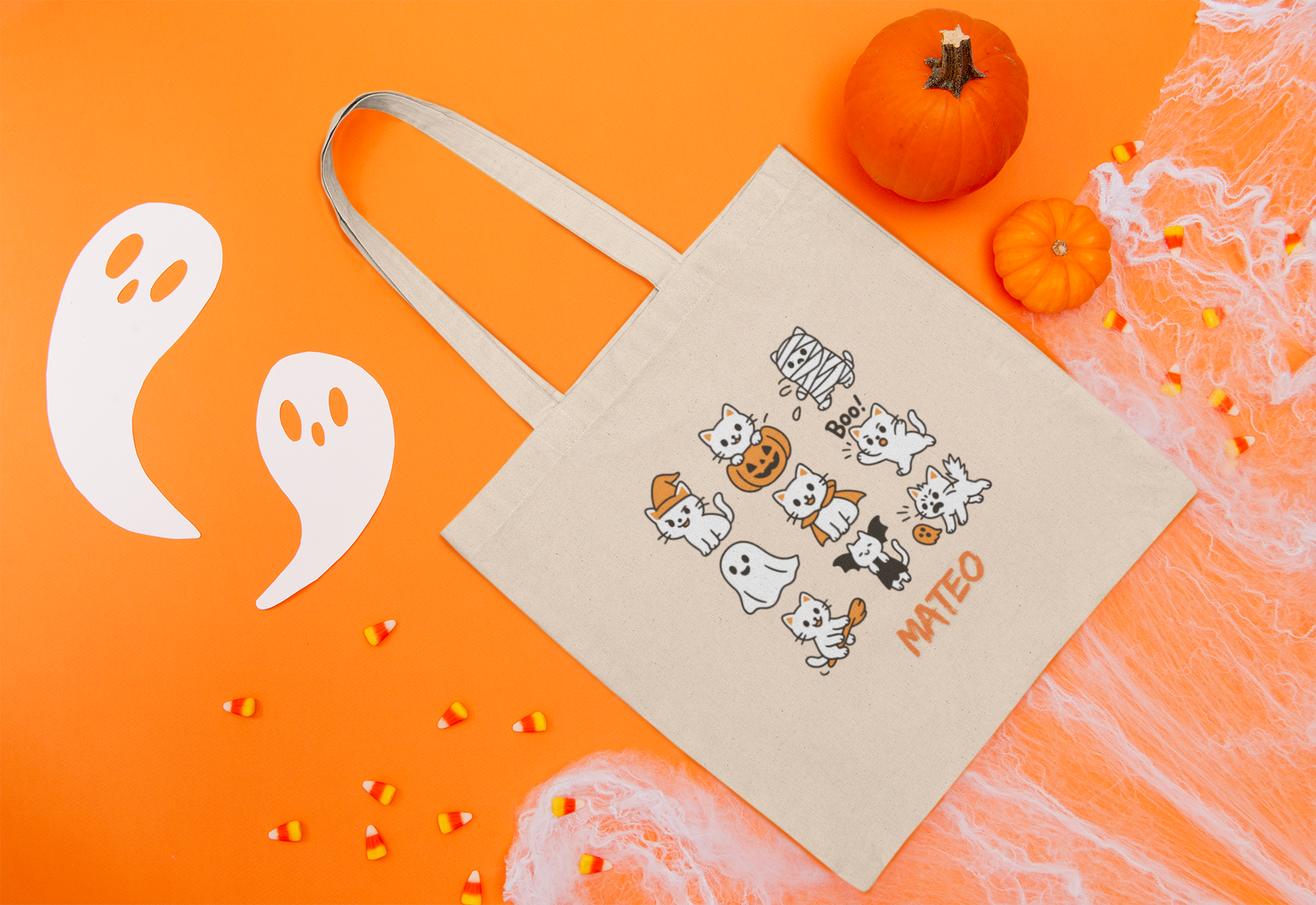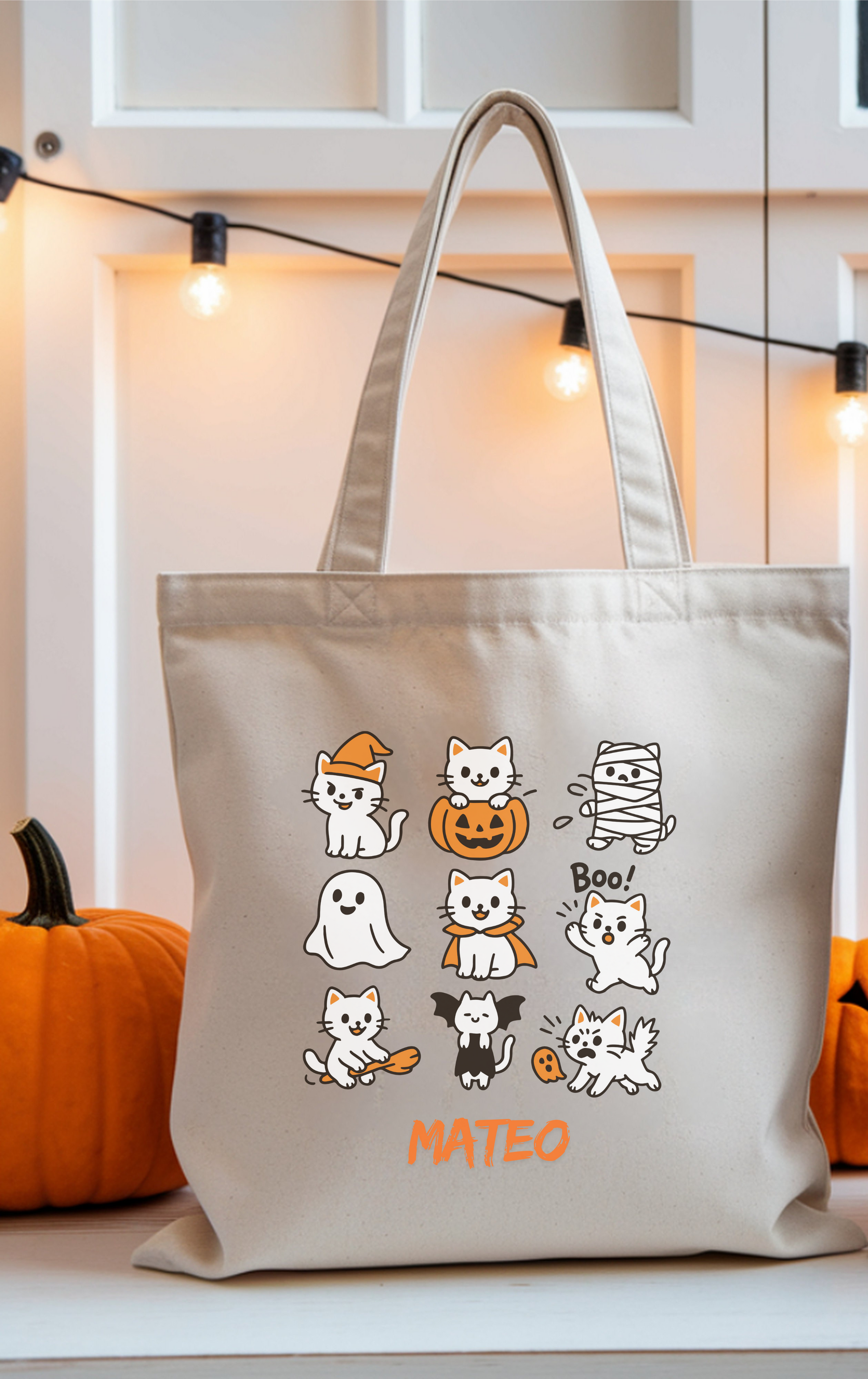 Cute Halloween Cat Tote Bag - Spooky Ghosts & Cats, Eco-Friendly Shopping Bag, Trick-or-Treat Tote, Gift for Cat Lovers, Halloween [...]