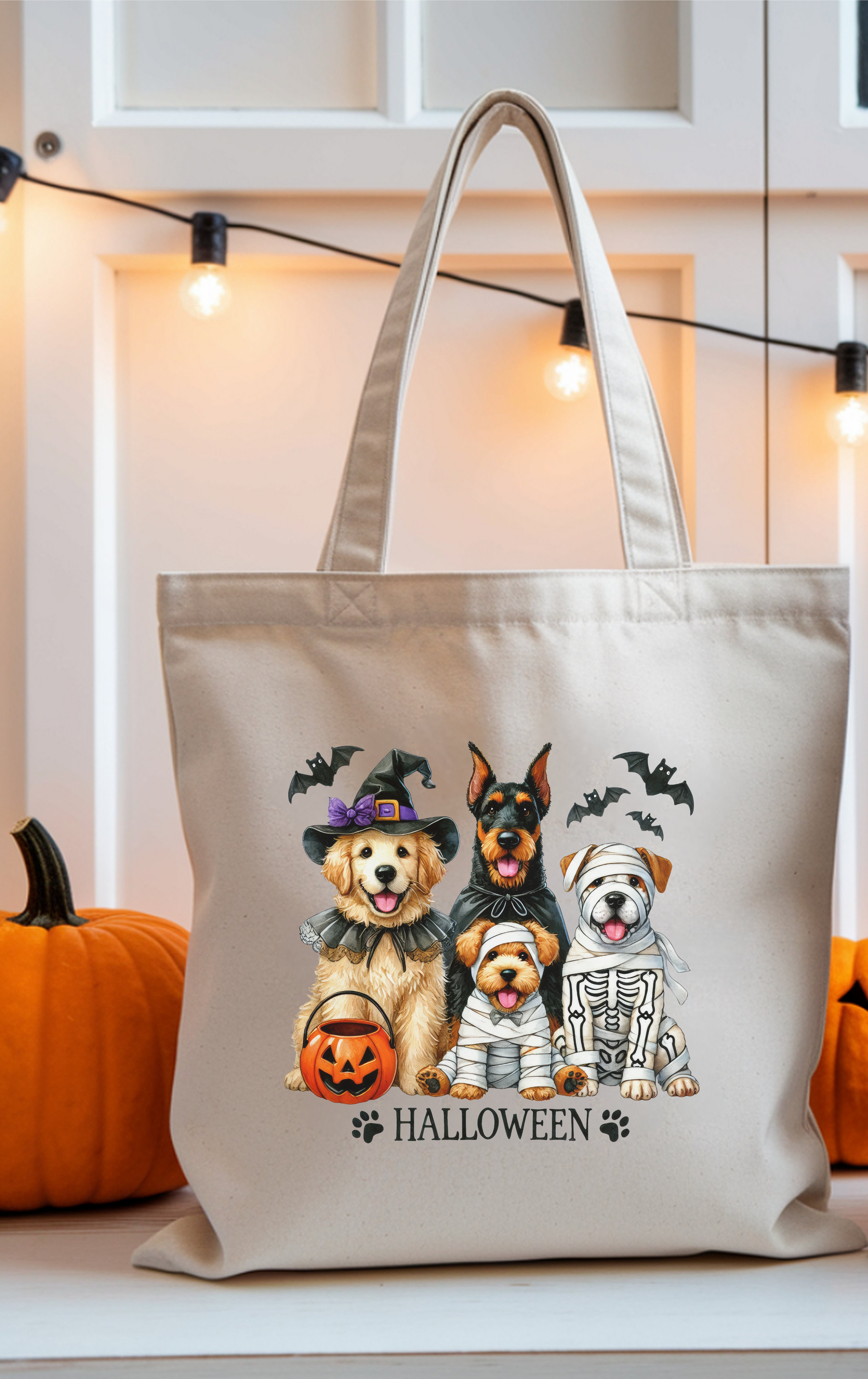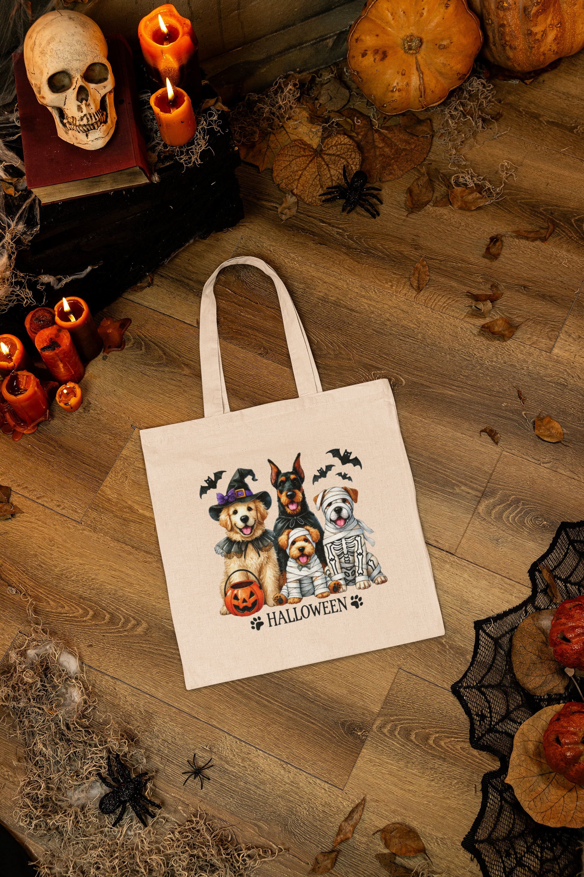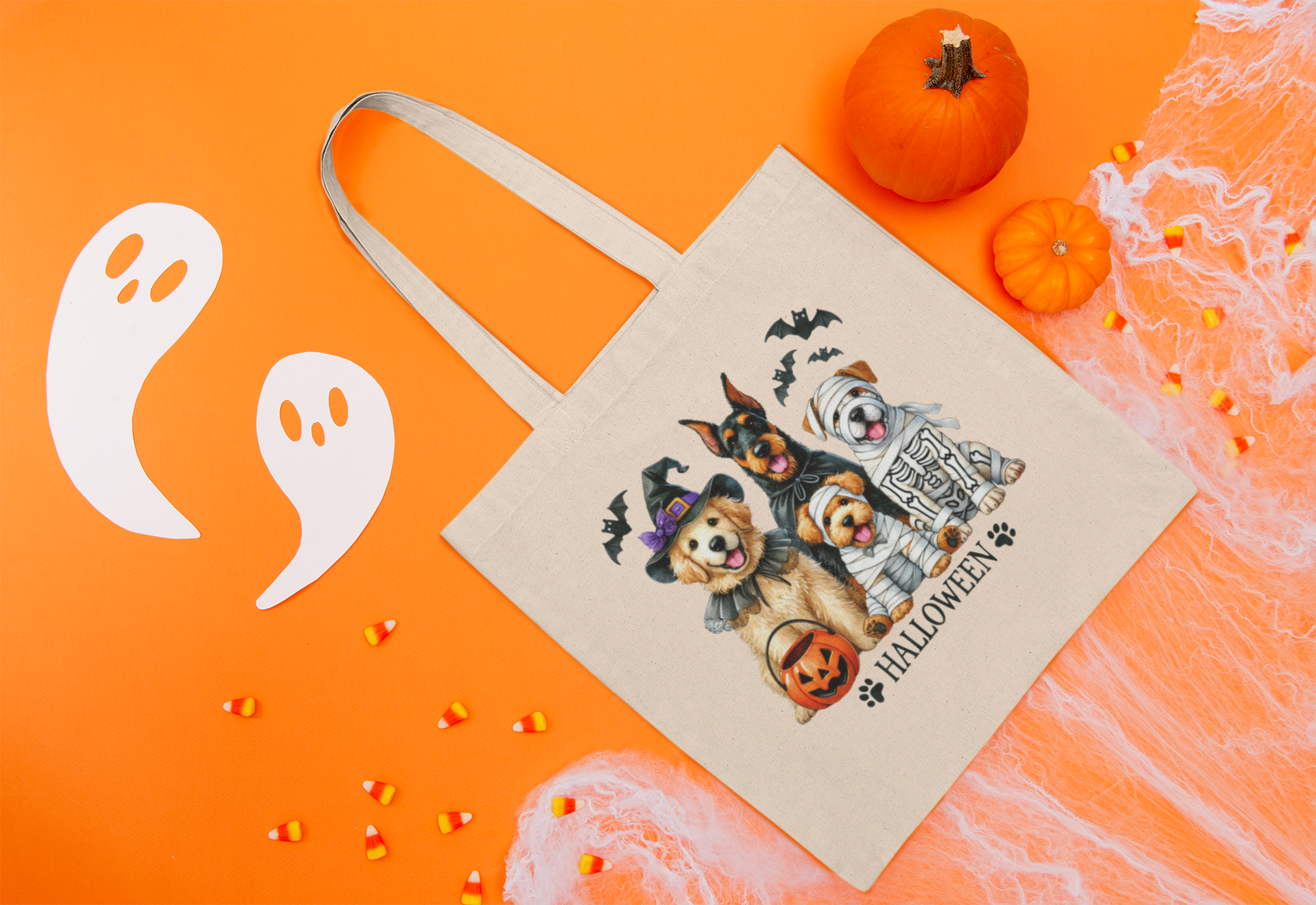 Halloween Dog Design Cotton Canvas Tote Bag, Eco-Friendly Shopping Bag, Gift for Dog Lovers, Halloween Treat Bag, Reusable Dog Tote
