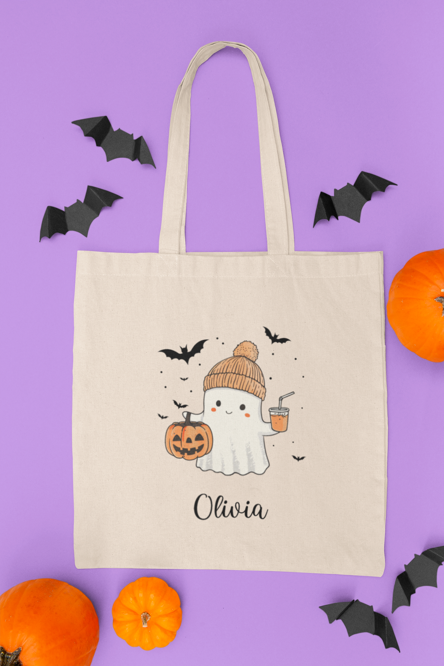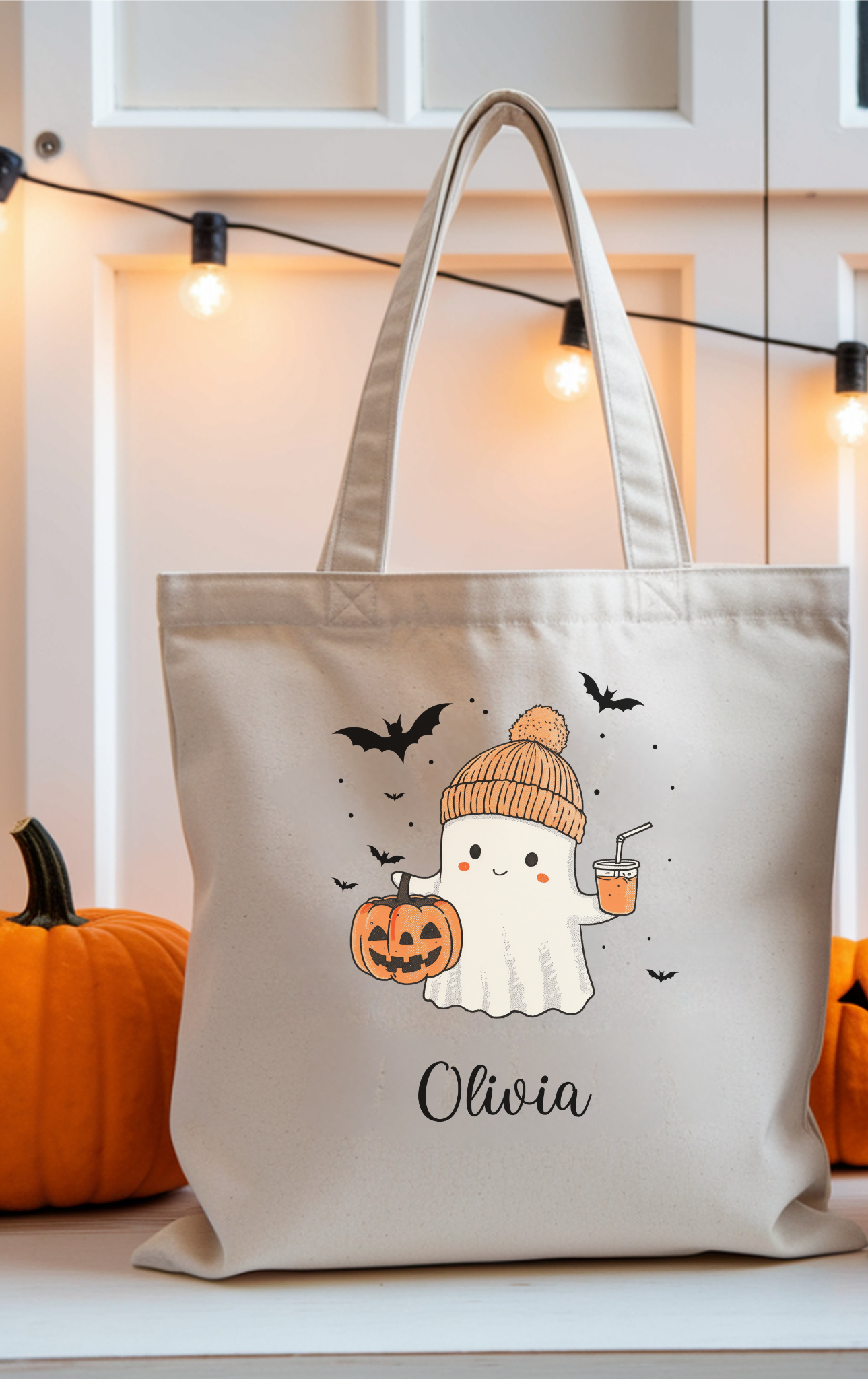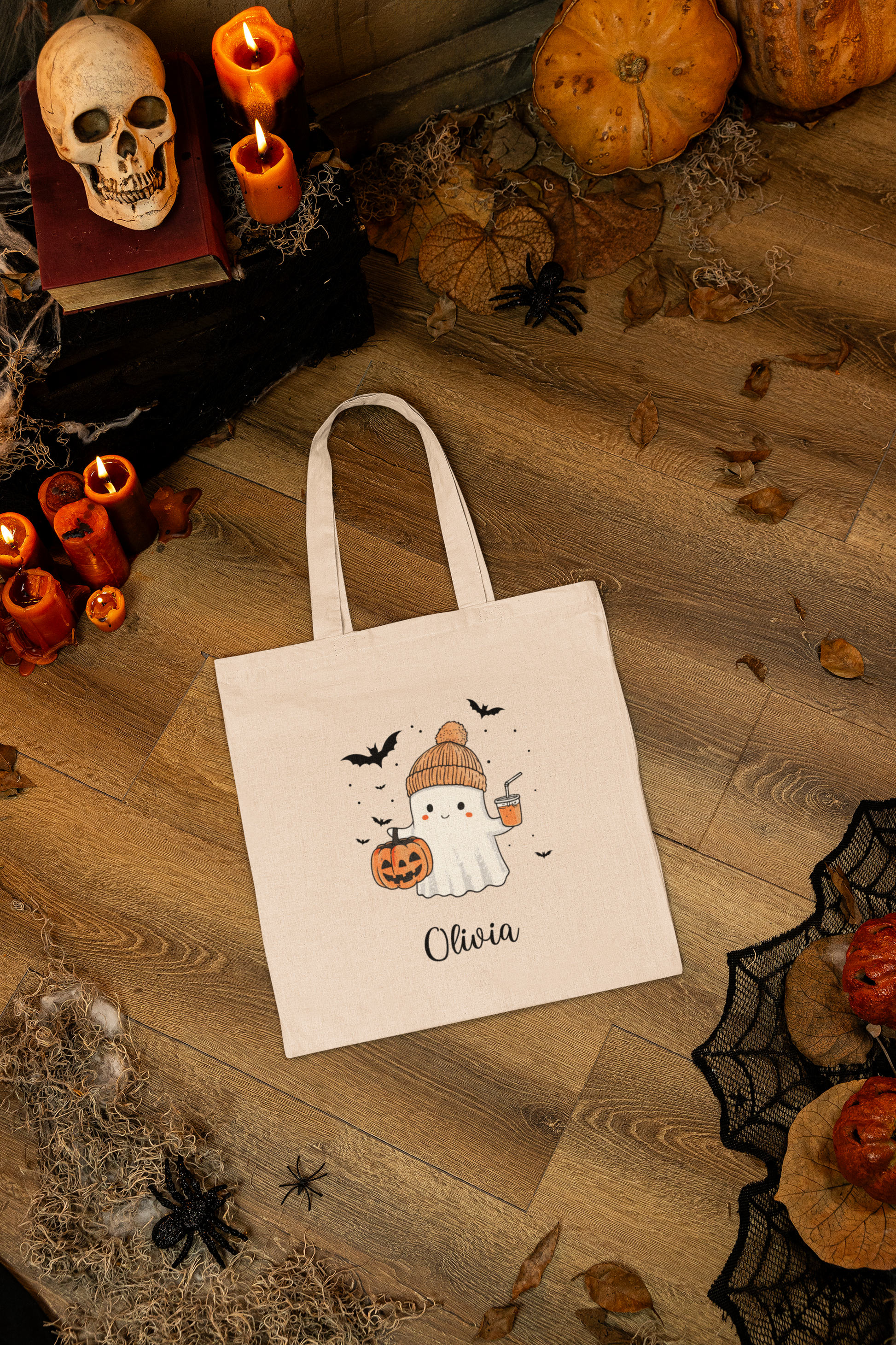 Personalized Halloween Ghost Cotton Canvas Tote Bag, Eco-Friendly Shopping Bag, Spooky Season Gift, Customizable Trick or Treat Bag, [...]