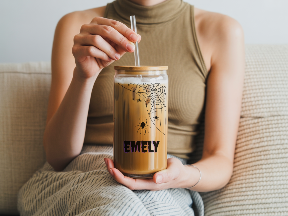 Personalized Spider Web Sipper Glass, Durable Beverage Container, Halloween Gift