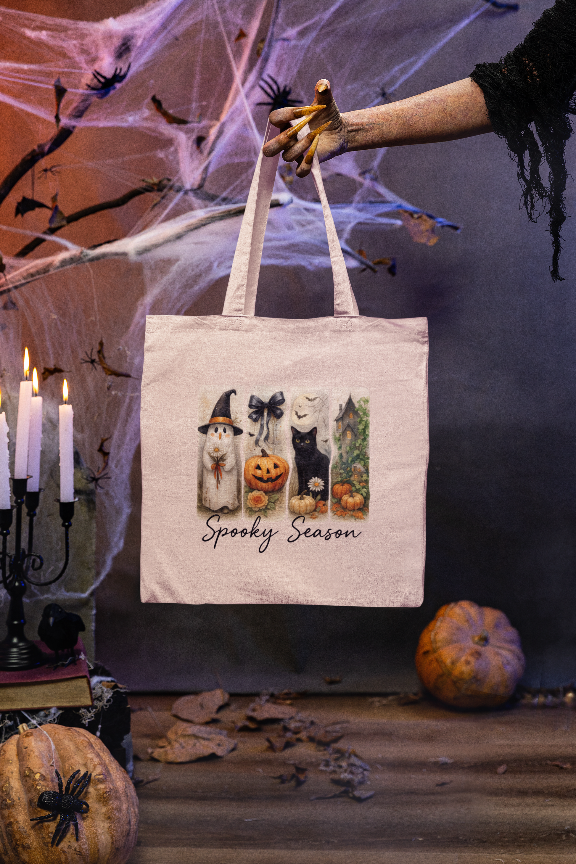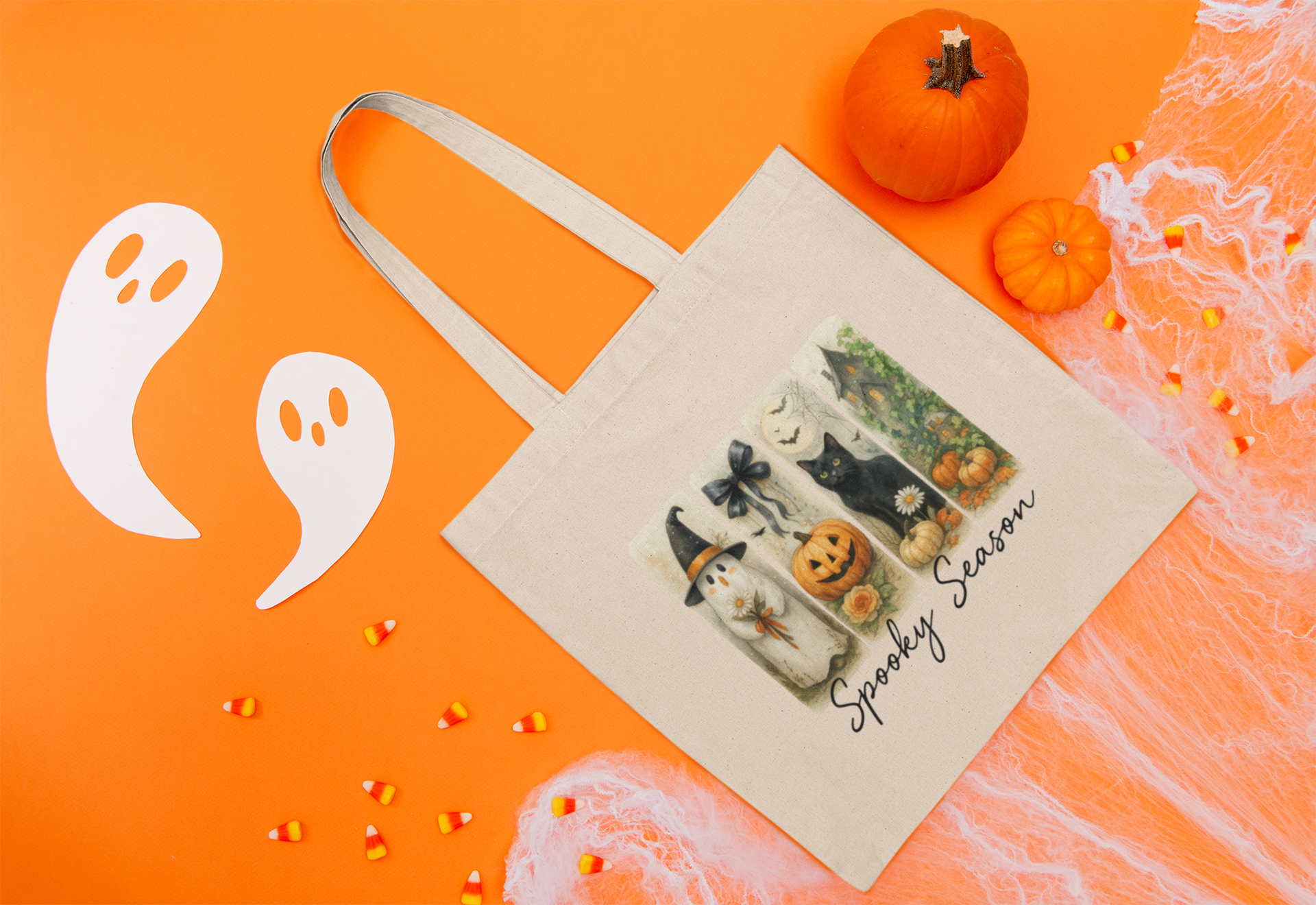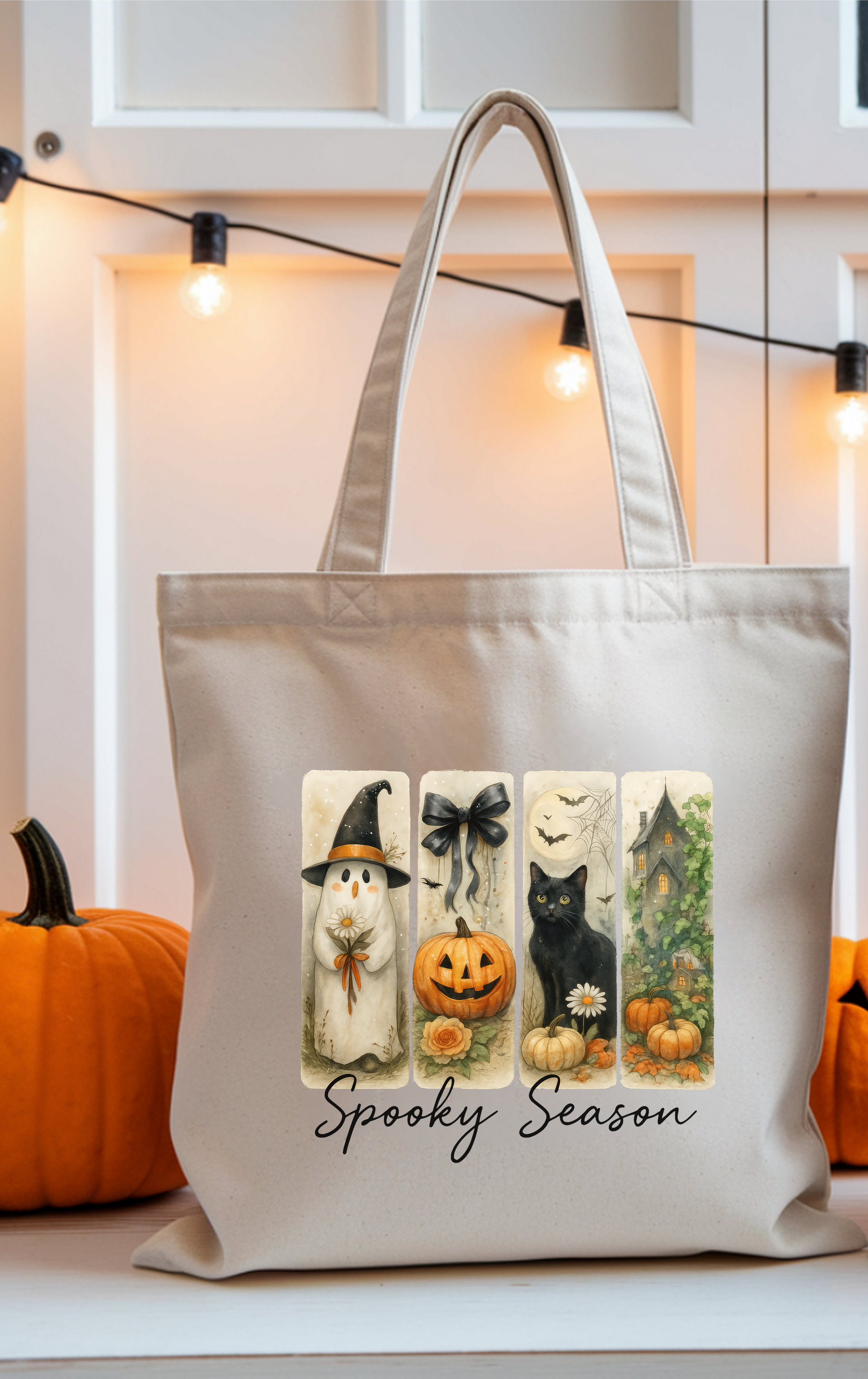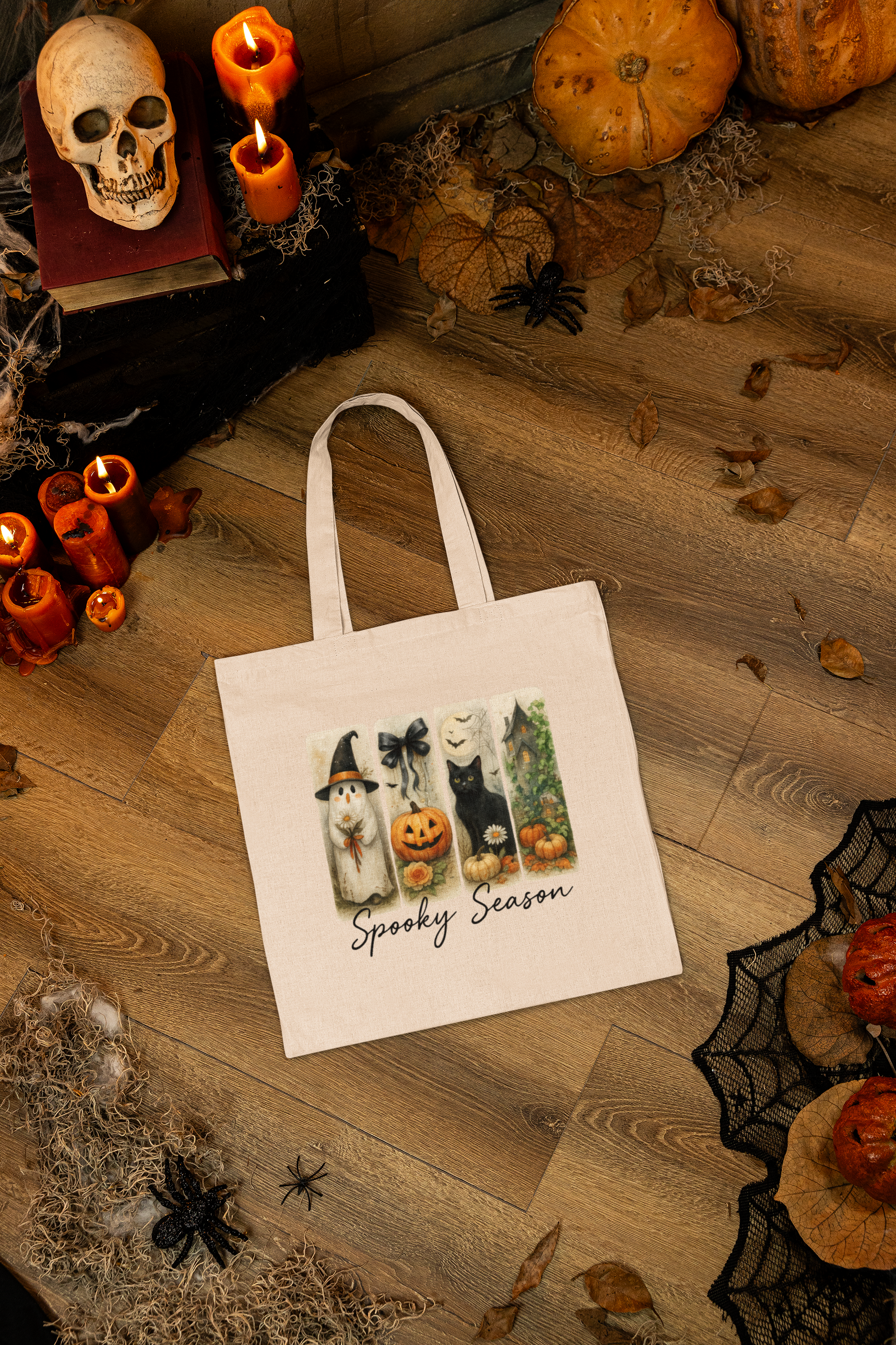 Spooky Season Cotton Canvas Tote Bag, Halloween Tote, Trick or Treat Bag, Eco-Friendly Shopper, Fall Accessories, Pet Lover Gift